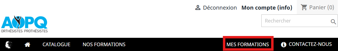 Une fois connectés à votre compte, vous devez vous rendre dans la section Mes formations, aussi accessible à partir de la barre de menu de navigation ou de votre tableau de bord.