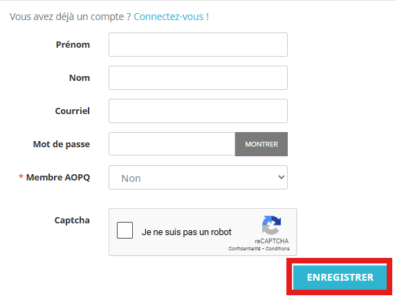Vous serez redirigé vers la page d’inscription et il vous suffira de remplir tous les champs obligatoires et de cliquer sur le bouton «Enregistrer».