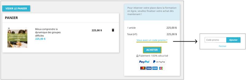 Après avoir ajouté la formation à votre panier, il ne vous reste plus qu'à finaliser votre achat.