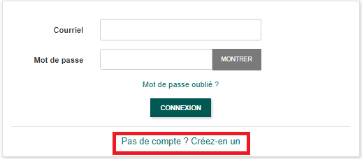 Si vous n’avez pas déjà de compte utilisateur associé à votre adresse courriel, vous pourrez en créer un nouveau en vous rendant sur la page de et en cliquant sur le lien au bas de la page.